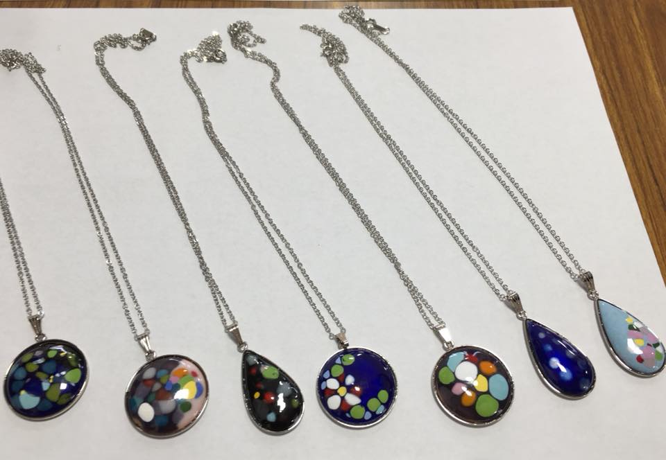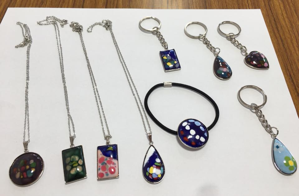 作業風景手順はシンプルですが、ベース色とフリットの選び方で色々な表情になるので、出来上がりを想像しながら色々悩むのも七宝の楽しさの一つ