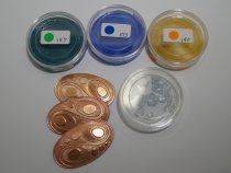 素材の銅板には指紋などの油分が付いているため、そのまま釉薬をのせると「ダマ」になって伸びにくいので「脱脂液」で表面の脂分を取り除きます。